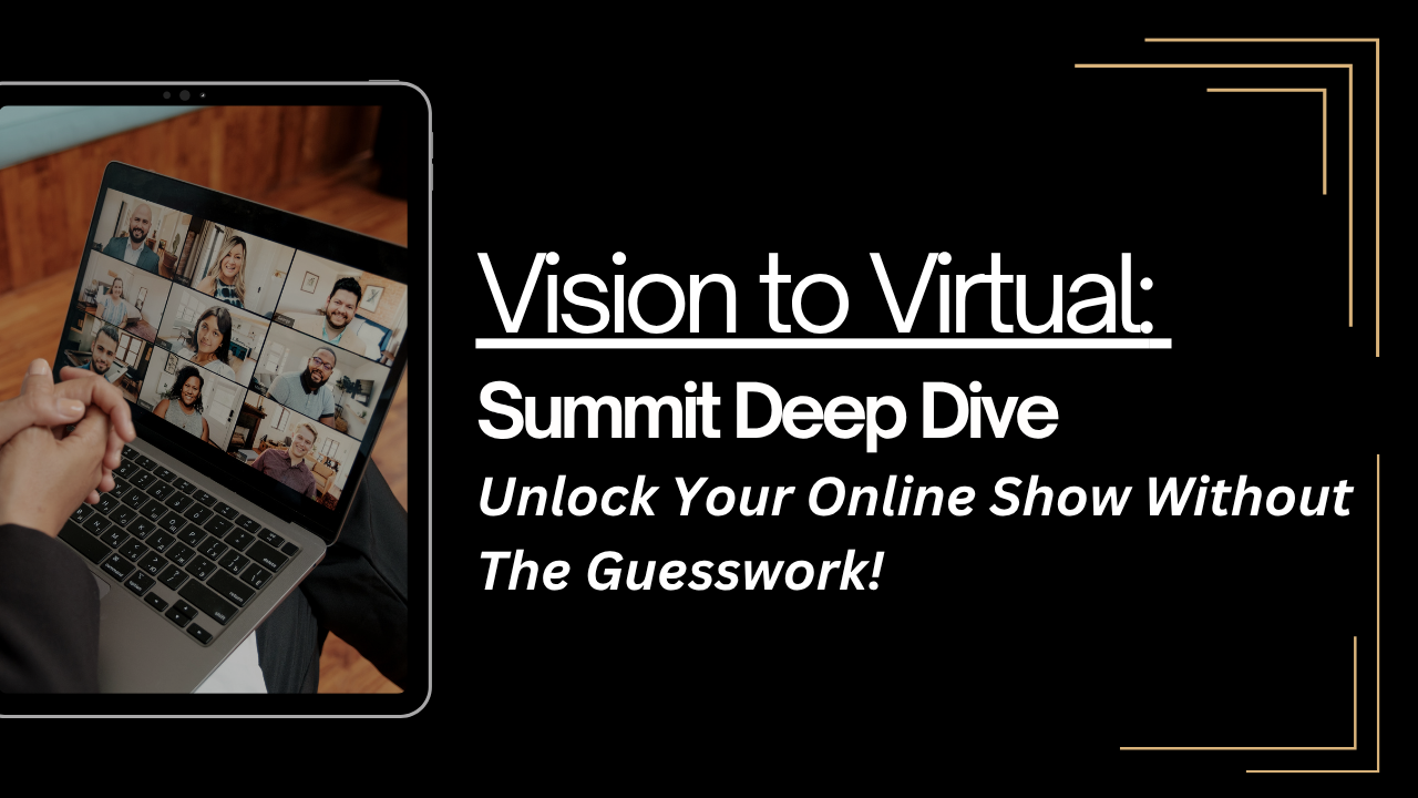 This is more than just a quick chat—this is a focused session designed to give you clarity, strategy, and direction. During the Summit Deep Dive, we’ll uncover what’s possible for you and map out whether a virtual summit is the right move for your business.